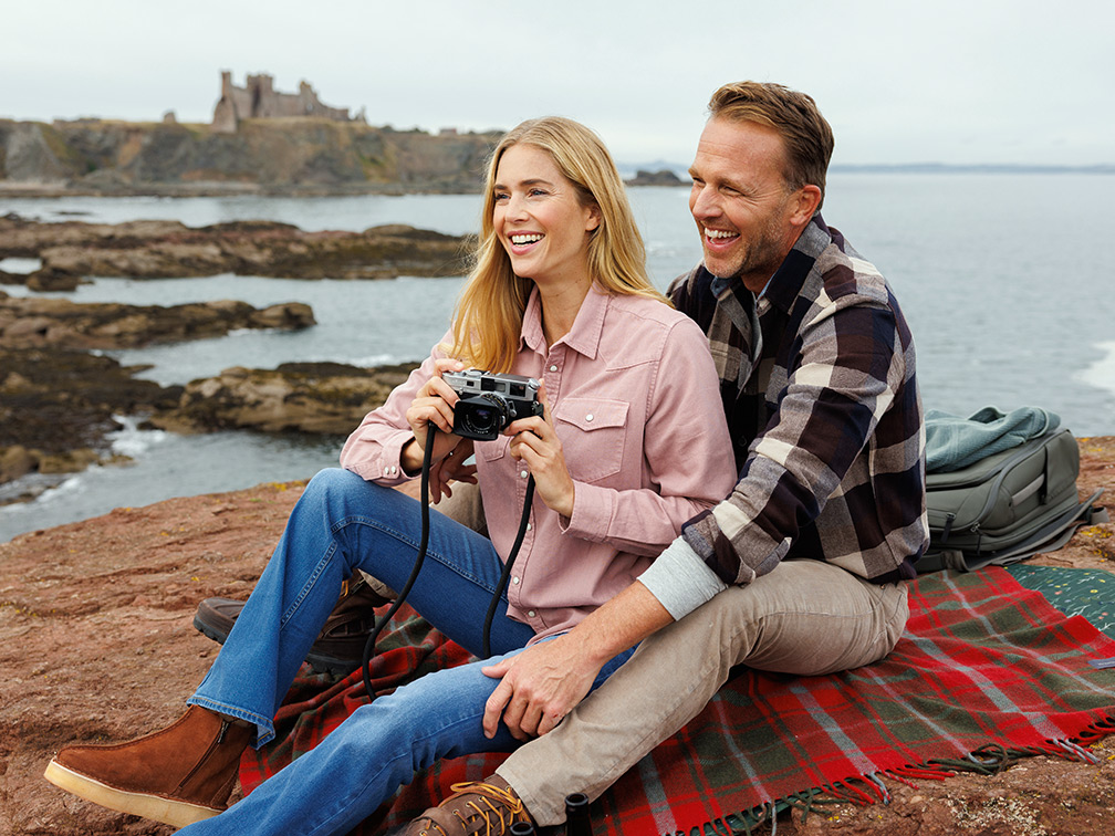 Our reversible heavy-weight twill features plaid on one side and stripe on the other.