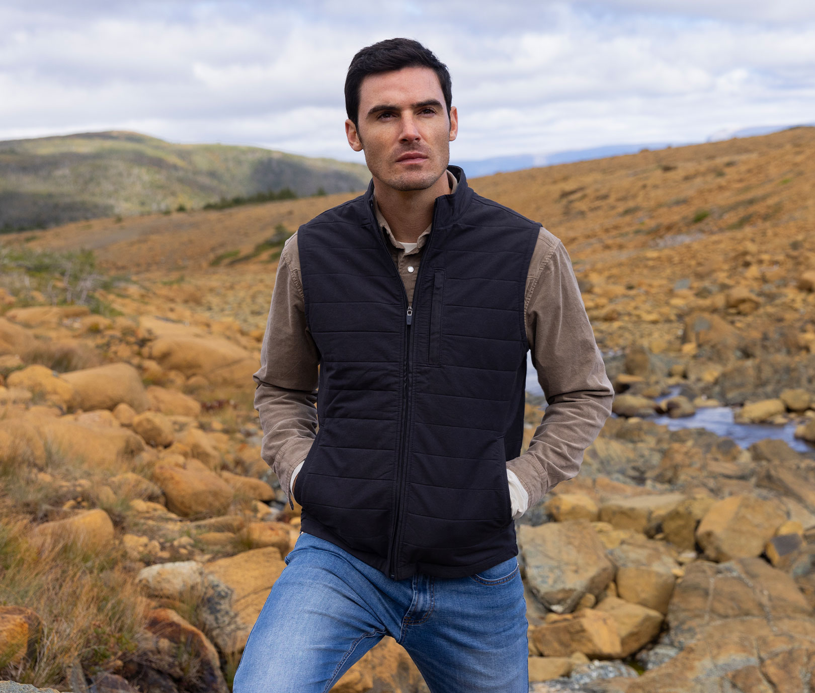 This quilted vest is crafted from a stretch cotton-nylon blend that adds flexibility without sacrificing structure. Lightly insulated for just-right warmth, it layers effortlessly over shirts or under jackets, making it a dependable piece across seasons.